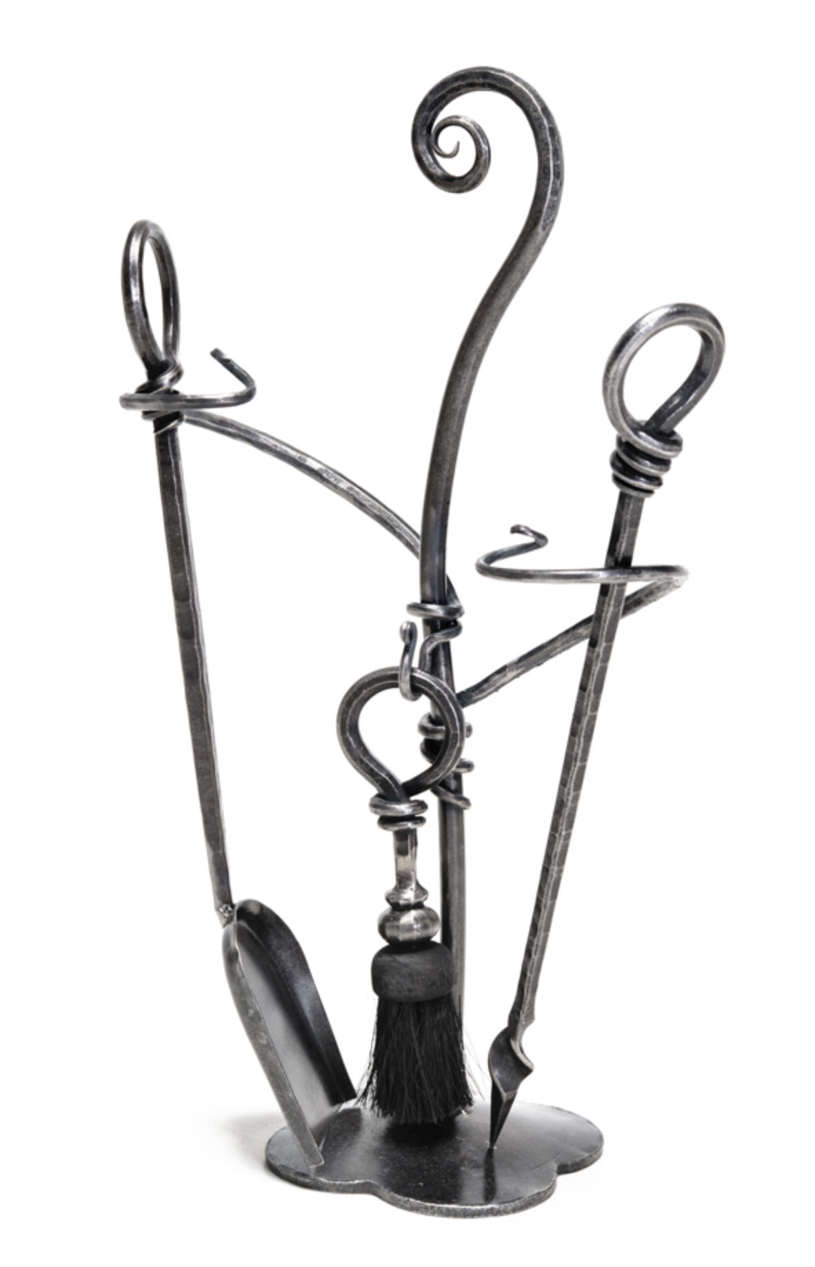Hand forged from 16mm round bar and standing 46cm high, this Companion Set is designed to be decorative as well as functional. An essential part of a companion set design is its stability. Our base is domed and made from forged 8mm steel plate making this a solid, sturdy piece of fireside furniture suitable for large open fireplaces or next to a wood burner. Combines beautifully with our straysparks Log basket.